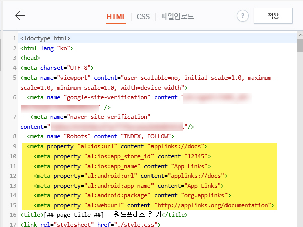 여러분의 웹 문서 콘텐츠가 모바일 앱으로도 제공이 가능하다면 앱 링크 정보를 넣어주세요.