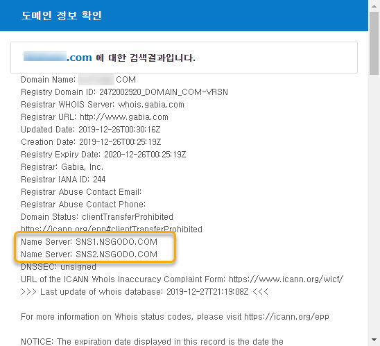도메인의 네임서버는 도메인을 등록한 등록대행업체 홈페이지에 로그인하여 변경할 수 있습니다.