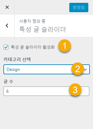 특성 글 슬라이더 옵션 페이지가 표시되면...