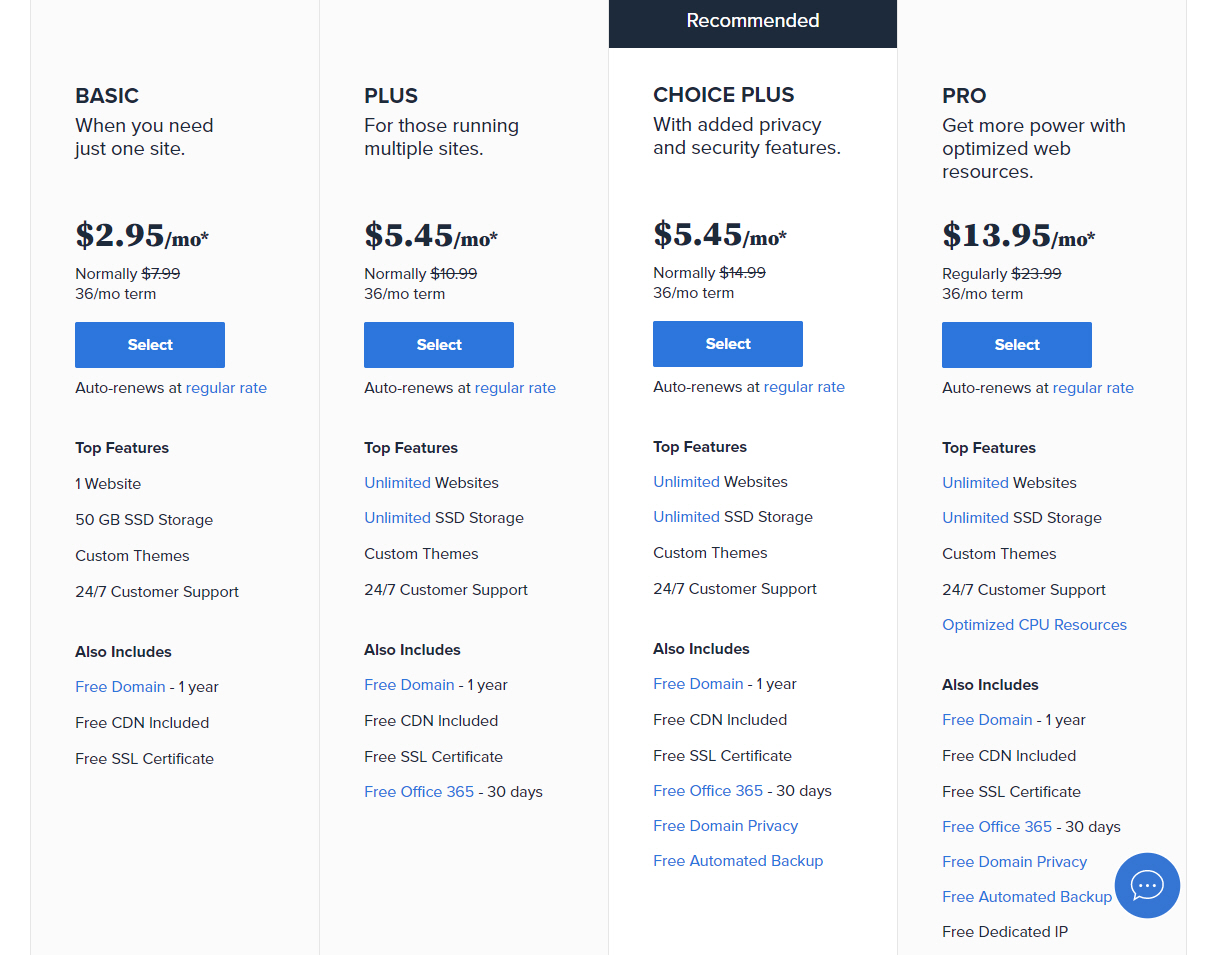 블루호스트 (Bluehost)에서는 크게 공유호스팅, VPS 호스팅, 전용 호스팅 등 3가지 종류의 호스팅 상품을 제공합니다. 이와는 별도로 워드프레스 호스팅 (WordPress Hosting), WP Pro, eCommerce 상품이 있습니다. 워드프레스 호스팅 상품은 공유호스팅(Shared Hosting)과 거의 비슷합니다.