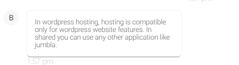 In wordpress hosting, hosting is compatible only for wordpress website features. In shared you can use any other application like jumbla.