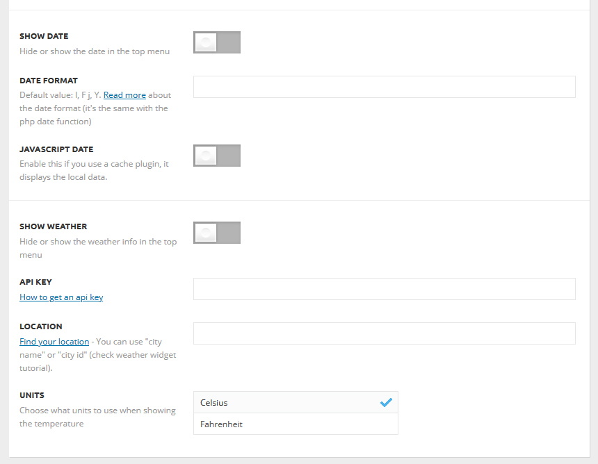 - API Key - 날씨를 표시하기 위해서는 관련 API 키를 입력해야 합니다.