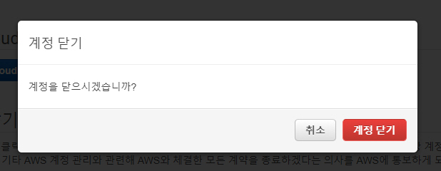 모든 체크란을 체크한 후에 "계정 닫기"를 클릭하면 "계정 닫기" 확인 창이 표시됩니다.