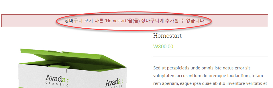 다른 "[상품명]"을(를) 장바구니에 추가할 수 없습니다 오류 메시지가 표시되면서 상품을 2개 이상 장바구니에 담을 수 없습니다.