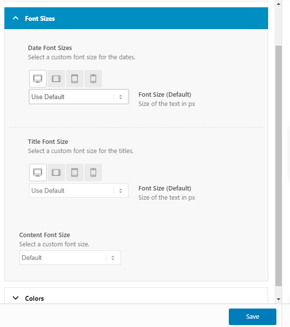 Colors (컬러) 섹션에서 글자 색상과 박스 배경색을 지정할 수 있습니다.