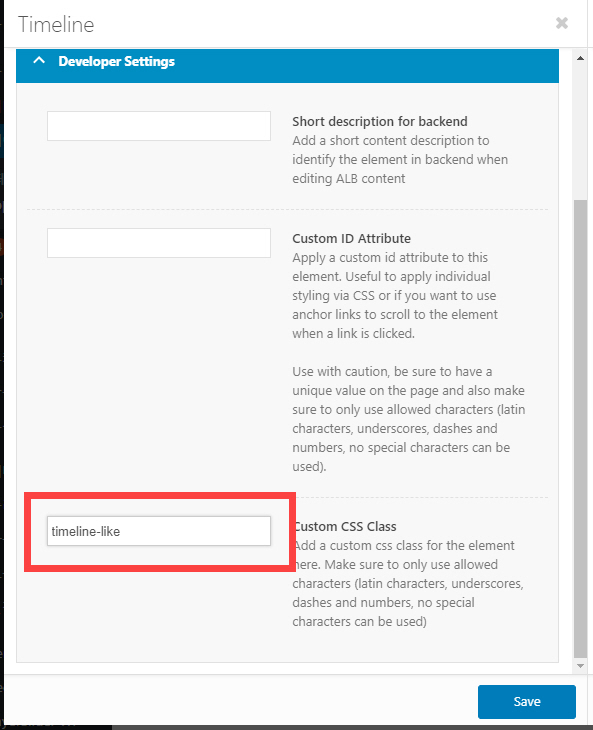 Developer Settings에서 CSS 클래스를 지정하면 CSS를 사용하여 커스텀할 때 편리합니다.