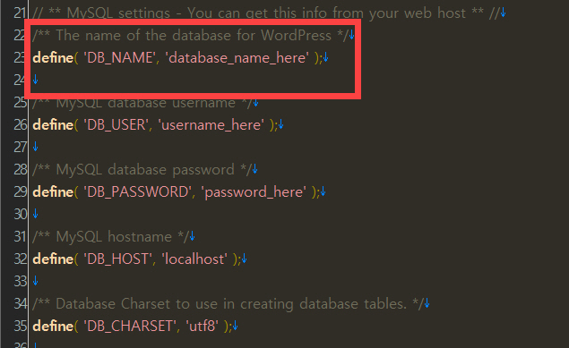 위의 그림에서 DB_NAME 부분에서 DB 이름을 확인할 수 있습니다. ('database_name_here' 값이 DB 이름임)