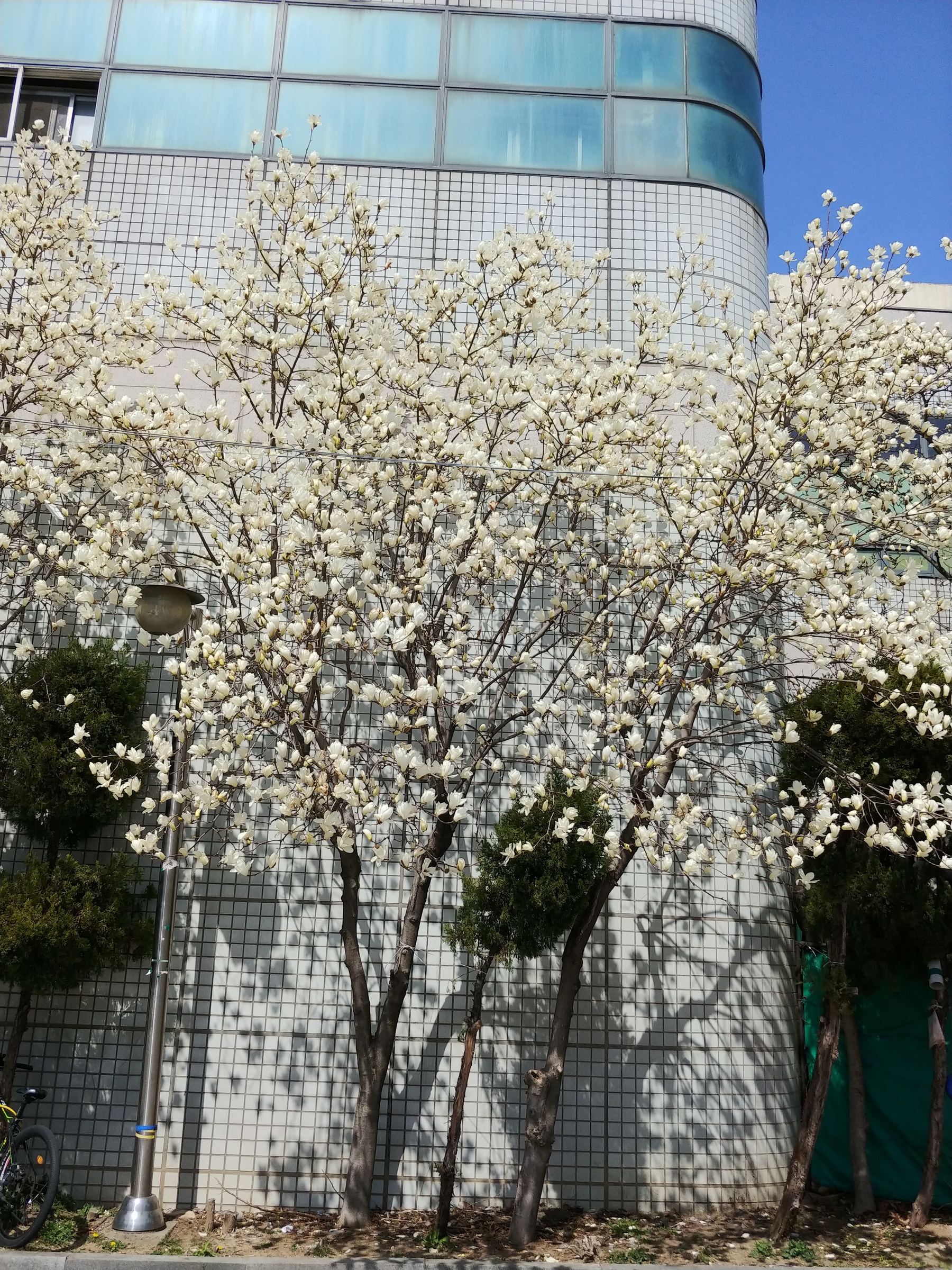 근처 지하철 역을 지나다가 목련이 흐드르지게 핀 것을 보고 스마트폰 카메라로 담아보았습니다.