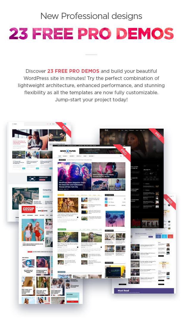 뉴스 사이트나 콘텐츠가 많은 블로그의 경우 뉴스페이퍼 테마를 사용하면 카테고리별로 편리하게 콘텐츠를 나열할 수 있고, 테마 옵션 내의 설정만으로 퀄리티 높은 사이트를 만들 수 있습니다. 직접 페이지를 만드는 데 어려움을 겪는 경우 마음에 드는 데모 (미리 만들어진 일종의 템플릿) 중 하나를 로드하여 사용할 수 있습니다.