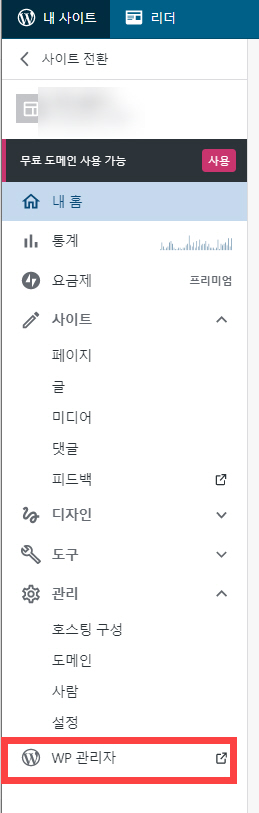 위와 같은 화면이 표시되면 WP 관리자를 클릭하여 워드프레스 관리자 페이지로 이동합니다.