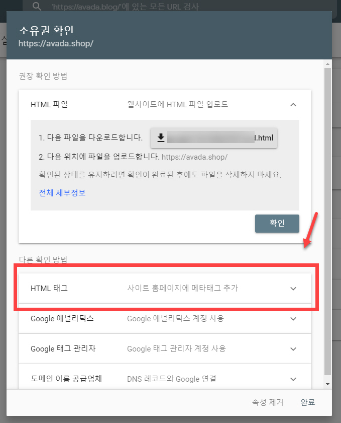 위와 같은 화면이 표시되면 다른 확인 방법 아래의 HTML 태그를 클릭합니다.