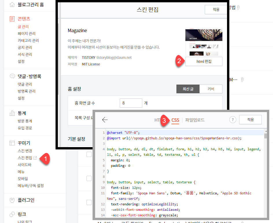 티스토리 매거진 스킨: 본문 글자 크기 변경하는 방법