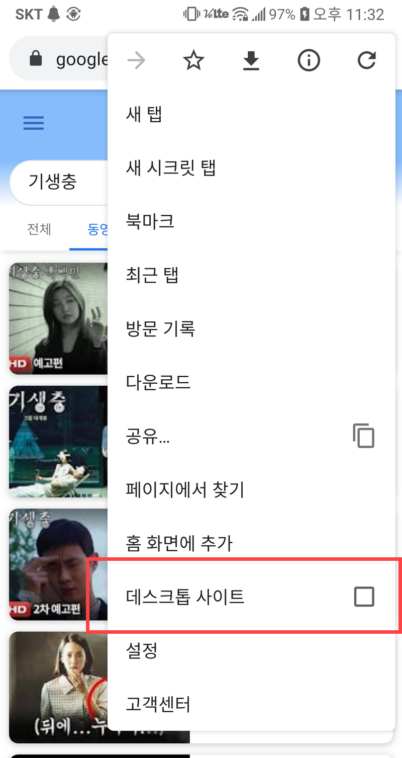 스마트폰에서 유튜브를 재생할 때 YouTube 앱을 이용하면 화질이 괜찮은 편입니다. 하지만 모바일 크롬 브라우저를 이용할 경우 화질이 흐리게 보일 수 있습니다. 그런 경우 크롬 브라우저의 설정에서 "데스크톱 사이트" 옵션을 체크해주면 화질이 개선될 것입니다.