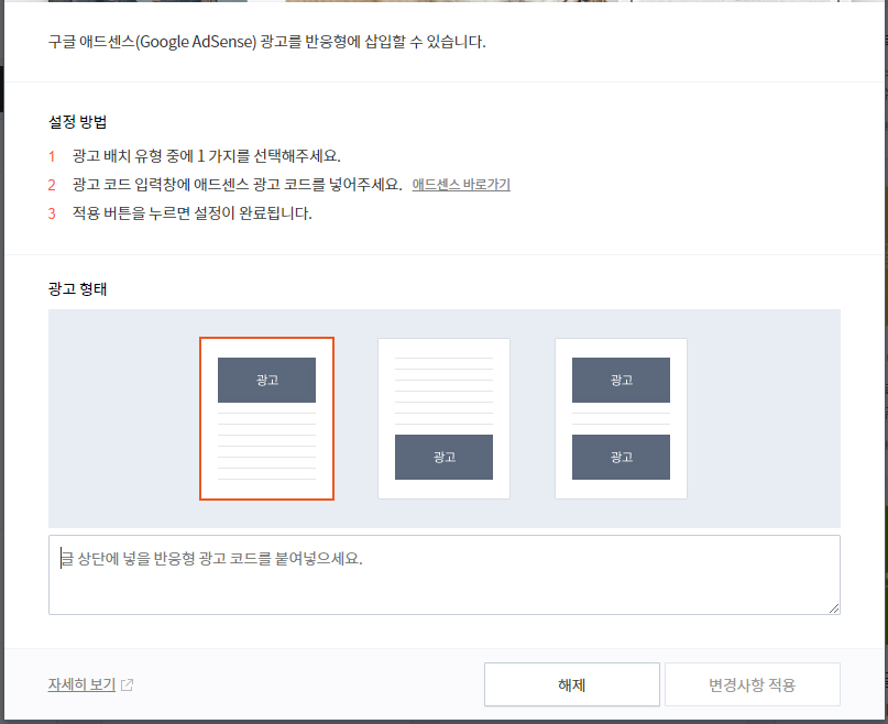티스토리 블로그 글 상단에 구글 애드센스 광고 2개 배치 방법