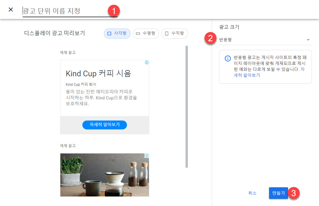 적용을 누른 후에 광고가 원하는 대로 표시되는지 확인해보시기 바랍니다.