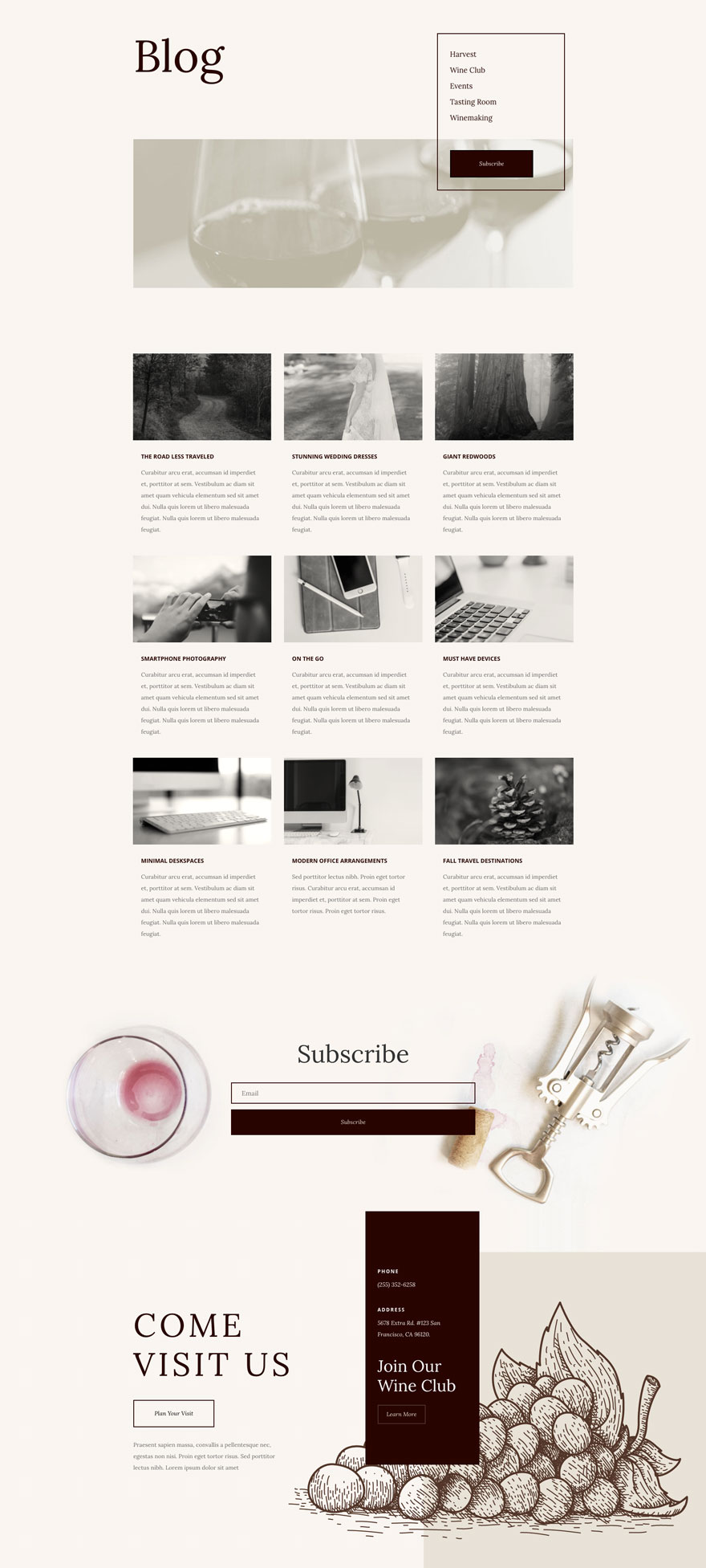 그리고 "Get a FREE Blog Post Template for Divi’s Winery Layout Pack"에서 Winery Layout Pack용 블로그 템플릿을 무료로 다운로드할 수 있습니다.