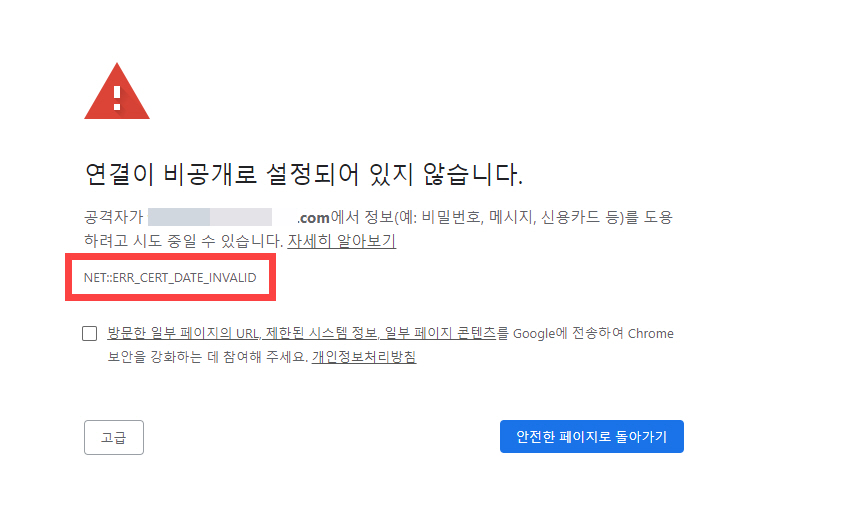 NET::ERR_CERT_DATE_INVALID 에러 메시지