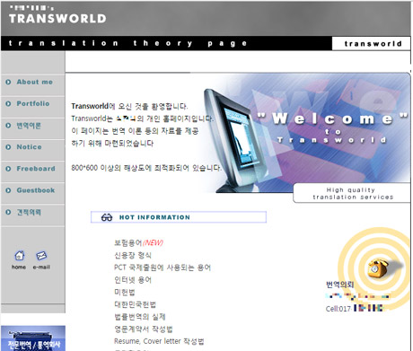 많은 콘텐츠를 올리지 않았지만 2000년 초에는 개인이 포트폴리오 사이트를 만들어 홍보하는 번역가는 그리 많지 않았을 것 같습니다. 지금은 천리안이 홈페이지 서비스를 종료하면서 사이트가 사라졌지만 홈페이지를 통해 제법 일을 수주할 수 있었습니다.