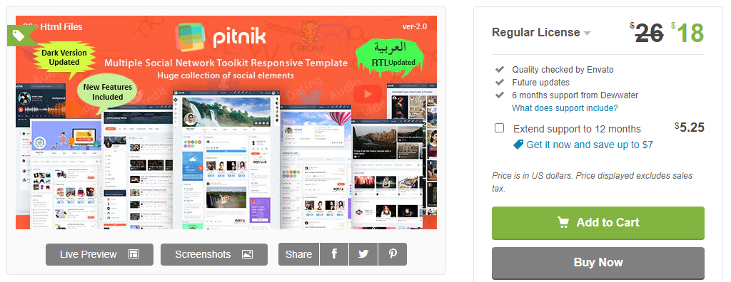 Pitnik Multiple Social Network Toolkit Responsive Template(다중 소셜 네트워크 툴킷 반응형 템플릿)