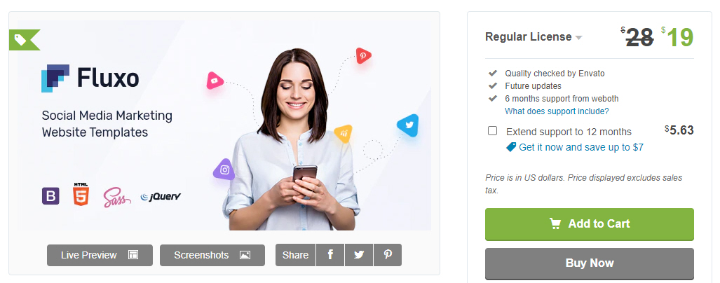 Fluxo는 최신 부트스트랩 프레임워크로 만들어진 예쁘고, 완전히 반응형이며 모바일 친화적인 소셜 마케팅 템플릿입니다.