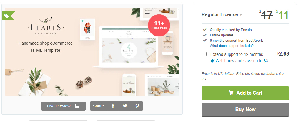 최고의 핸드메이드 전자상거래 HTML 템플릿. Learts는 기프트 샵 (선물가게), 가구점, 아트 디자인 스튜디오 등을 위한 사이트 구축에 적합합니다.