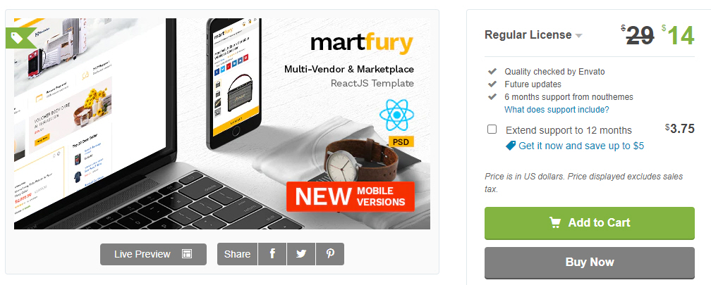 React, Next JS, Redux, Redux-Saga, Sass 및 Bootstrap 4로 만들어진 Martfury React 템플릿. 이 템플릿은 멀티벤더 마켓플레이스, 전자제품 스토어, 가구 스토어, 의류 스토어, 하이테크 스토어, 액세서리 스토어 등에 적합합니다.