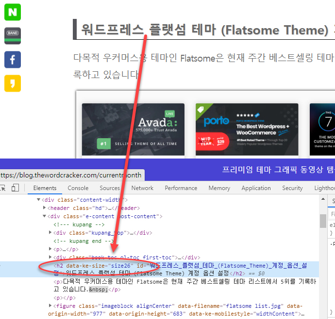 그러므로 새로운 글쓰기를 사용하는 경우 소제목을 지정할 때 제목1부터 지정하도록 합니다. 제목1을 지정하면 아래 그림과 같이 H2 태그가 적용됩니다.