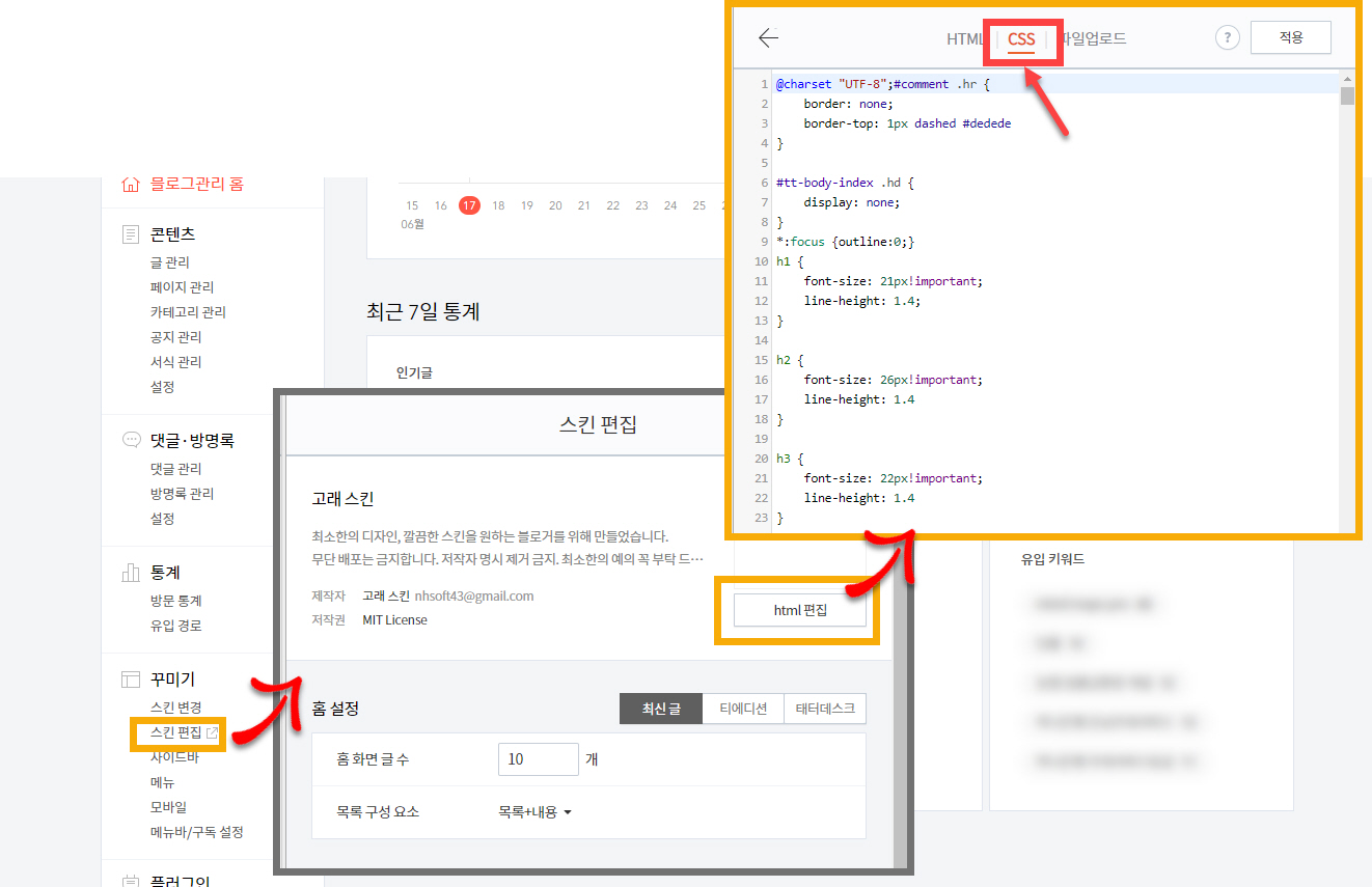 티스토리 블로그에 사용자 CSS 코드 추가하기