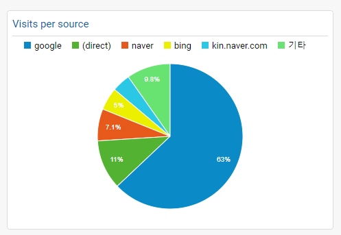 구글 애널리틱스 통계에 의하면 구글 유입이 63%로 2/3 정도 차지하고 있습니다.