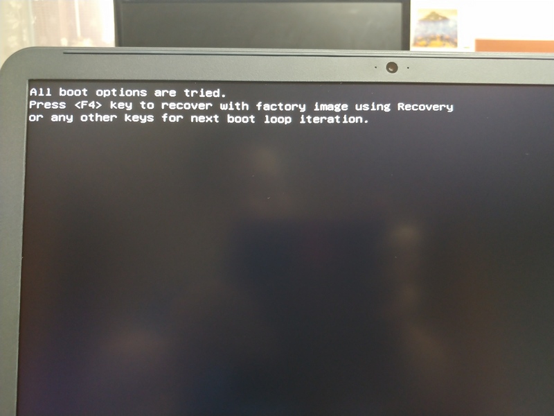 윈도우 설치 USB가 준비되었다면, 새로 구입한 노트북을 켭니다. 노트북을 켜면 다음 사진과 같이 부팅 옵션이 없다는 메시지가 표시될 수 있습니다.