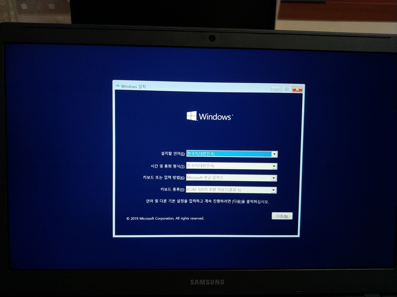 이 화면이 표시되면 일반적인 윈도우 설치 과정에 따라 윈도우를 설치하시면 됩니다.