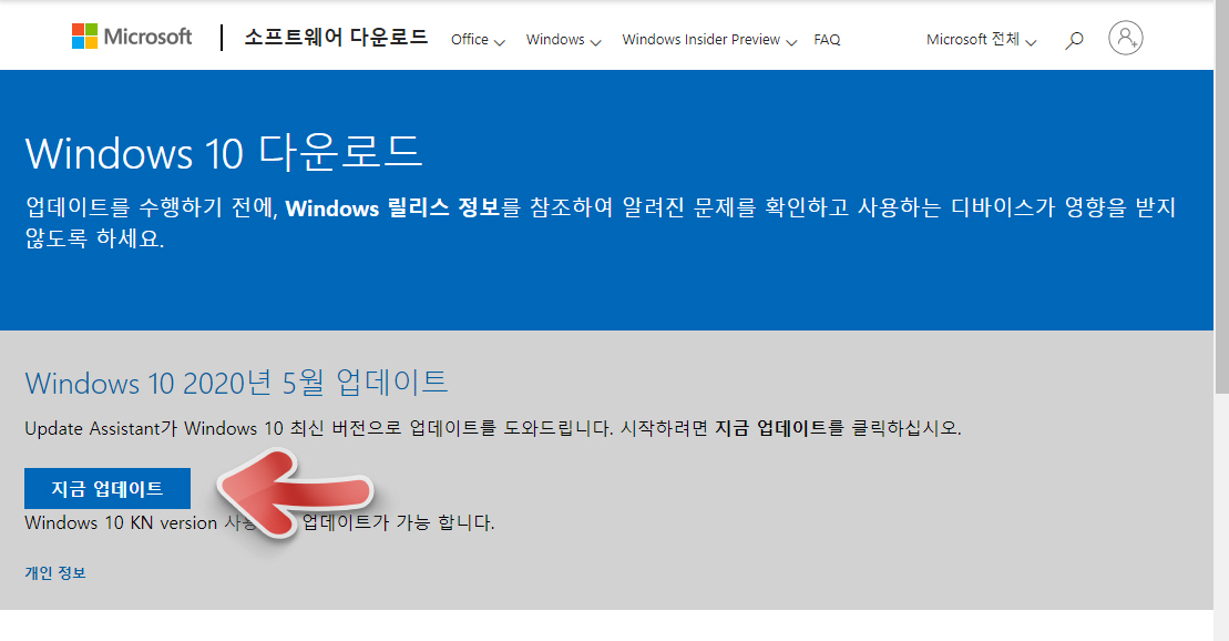 위의 사이트를 방문하여 가장 최근에 올라온 윈도우 업데이트 파일을 다운로드하여 업데이트하면 문제가 해결됩니다.