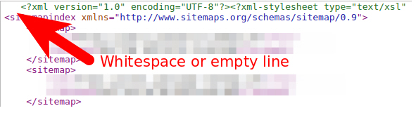 Yoast SEO에 의하면 이 문제는 보통 플러그인이나 테마 함수에서 사이트맵의 시작 부분에 빈 공백 문자(empty whitespace)를 추가하기 때문에 발생합니다. Yoast SEO 문서를 참고하여 사이트맵의 소스 코드를 확인할 수 있습니다.