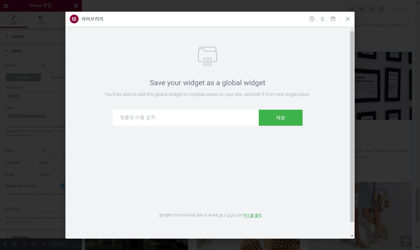 워드프레스 엘리멘터 페이지 빌더 Global 위젯 사용하기