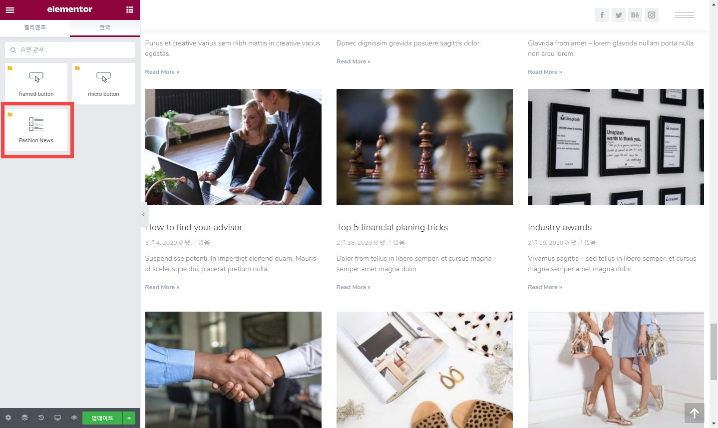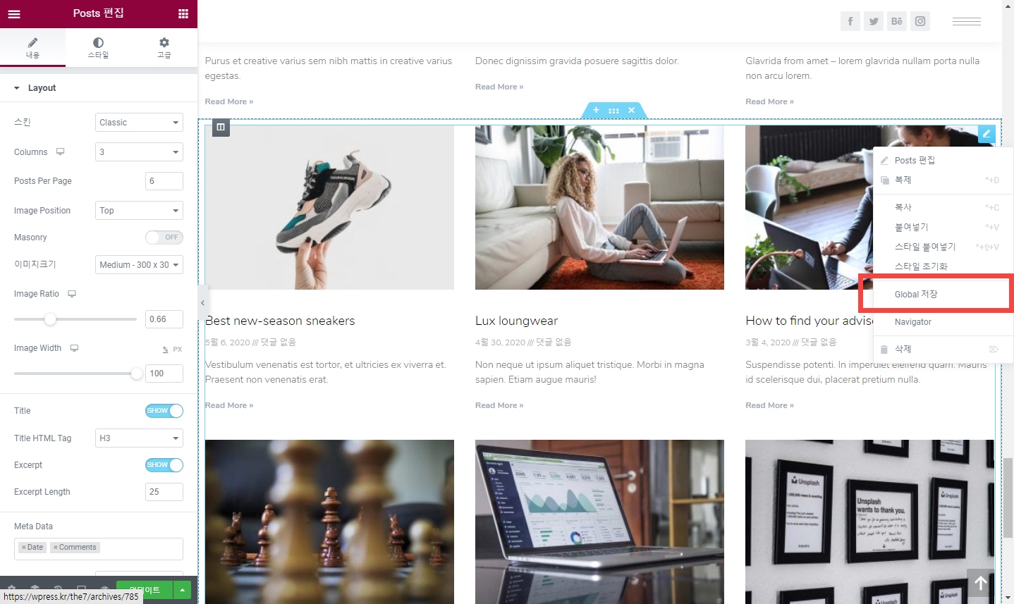 워드프레스 엘리멘터 페이지 빌더 Global 위젯 사용하기
