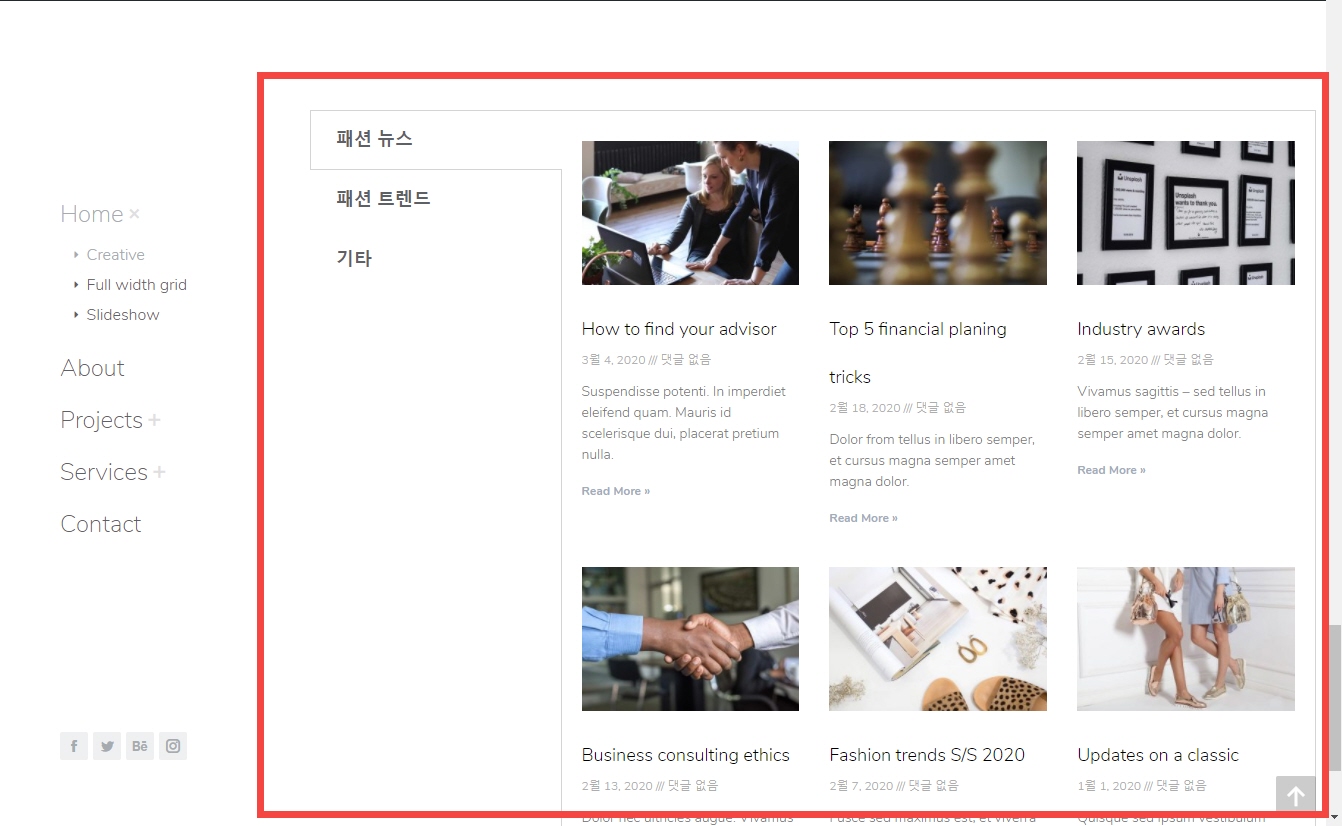 탭 형식으로 동적인 콘텐츠(예: 카테고리 글, 갤러리, 포트폴리오 등)를 표시하고자 하는 경우 유용합니다.