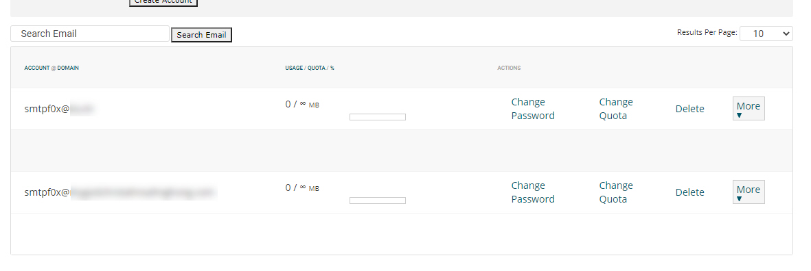 cPanel을 살펴보니 smtpf0x로 된 이메일 계정이 3개 정도 있었습니다. 아마 멀웨어에 감염되면서 이 이메일 계정이 생성되었던 것 같습니다. 스팸을 발송하기 위한 목적으로 메일 계정을 생성한 것이 아닌가 의심됩니다.