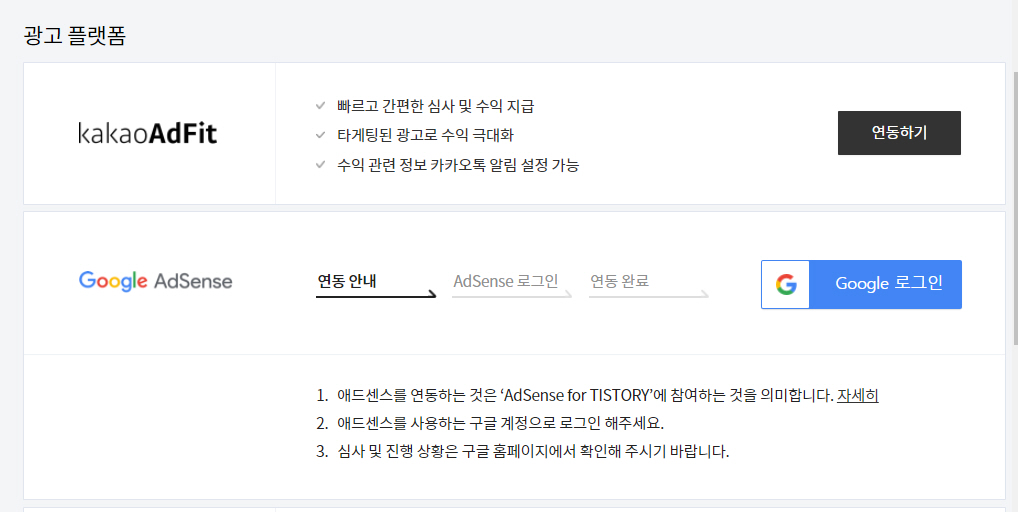 kakaoAdFit과 구글 애드센스 연동이 가능합니다.