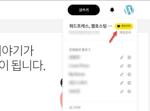 로그인한 상태에서는 우측 상단의 아바타 아이콘을 클릭하면 계정전환 링크가 표시됩니다.