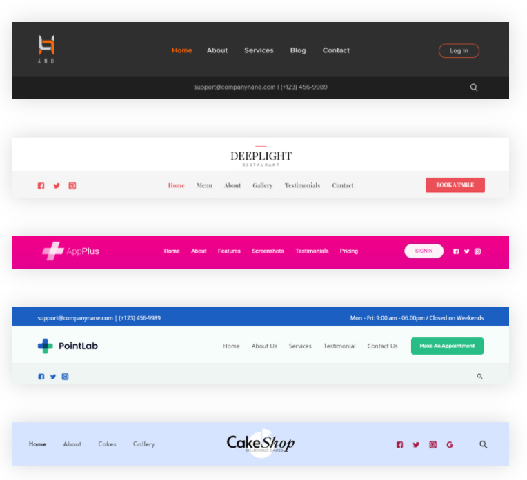 헤더 & 푸터 빌더를 사용하여 다음과 같은 헤더를 만들 수 있습니다.