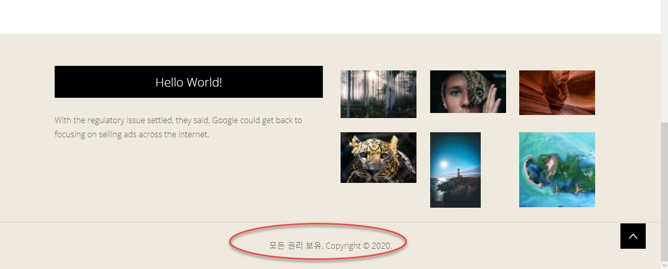 위와 같은 코드를 사용하면 다음과 같이 푸터 카피라이트 정보가 변경됩니다.