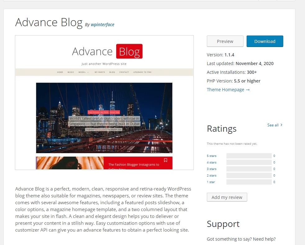 Advance Blog는 개인 블로그를 운영할 때 사용할 수 있는 무료 블로그 테마입니다. 사용자가 많지 않기 때문에 이 테마와 관련하여 문의 사항이 있다면 테마 개발자에게 직접 연락해야 할 것 같습니다.