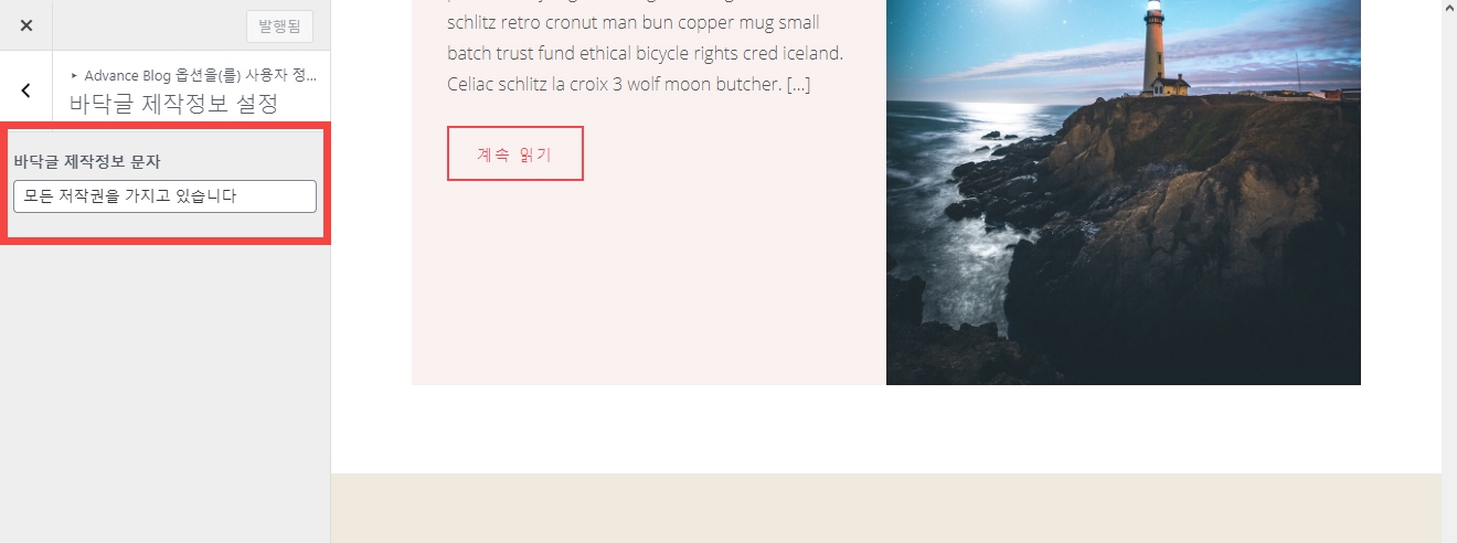 워드프레스 Advance Blog의 푸터 저작권 텍스트 변경하기