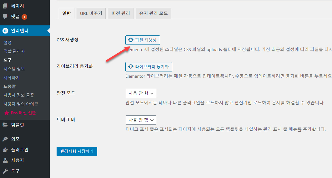 URL을 교체한 후에는 도구 > 일반 > CSS 재생성파일 재생성을 클릭하여 CSS 파일을 재생성합니다.