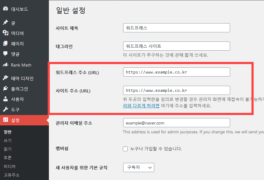 간혹 워드프레스 주소와 사이트 주소 중 하나만 변경하는 경우가 있는데, 그런 경우 사이트가 깨지거나 로그인이 제대로 되지 않는 현상이 발생할 수 있습니다.