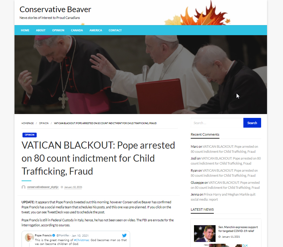 가짜 뉴스의 근원지는 캐나다 컨저버티브 비버(Conservative Beaver)라는 캐나다 언론이라고 합니다.