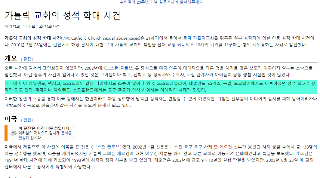 교황청과 가톨릭은 아동 성범죄를 비롯한 각종 범죄와 연루되어 실형을 선고받고 막대한 합의금을 내는 사례가 지속적으로 보도되고 있습니다.