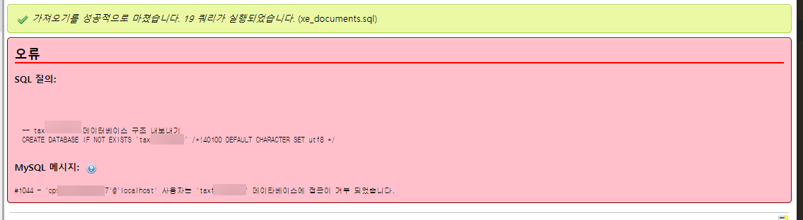 phpMyAdmin에서 임포트 시 #1044 = ''@'localhost' 사용자는 '' 데이터베이스 접근이 거부되었습니다 (#1044 - Access denied for user ''@'localhost' to database) 오류가 발생하여 임포트에 실패했습니다.