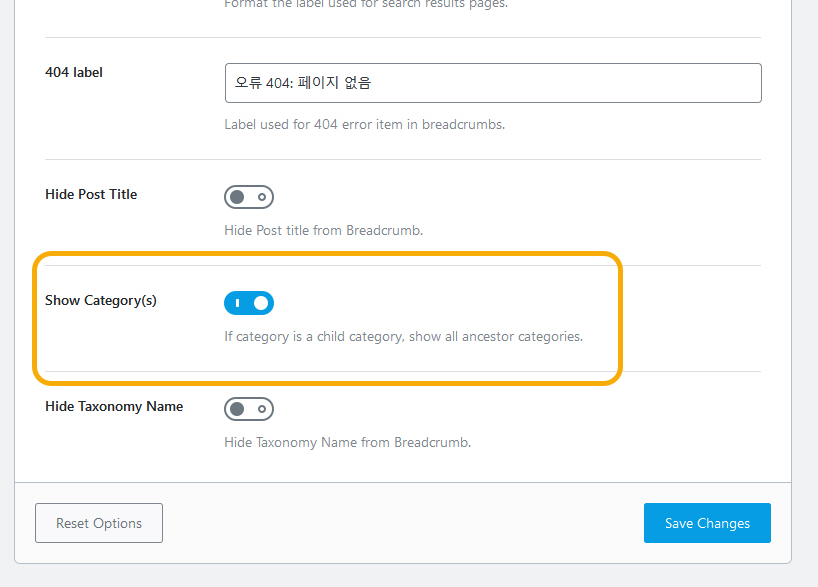 그리고 카테고리를 표시하려면 Show Category(s) 옵션을 On으로 설정하면 됩니다.