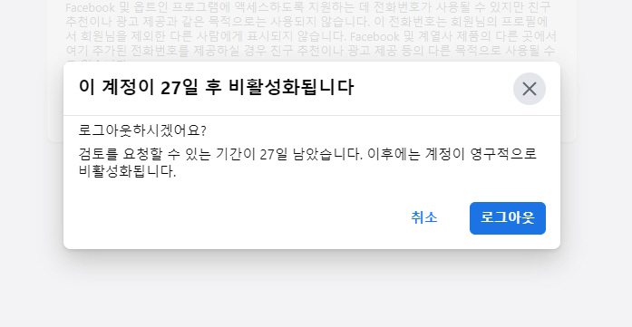 페이스북 커뮤니티 규정 위반으로 인한 계정 비활성화